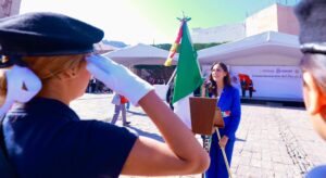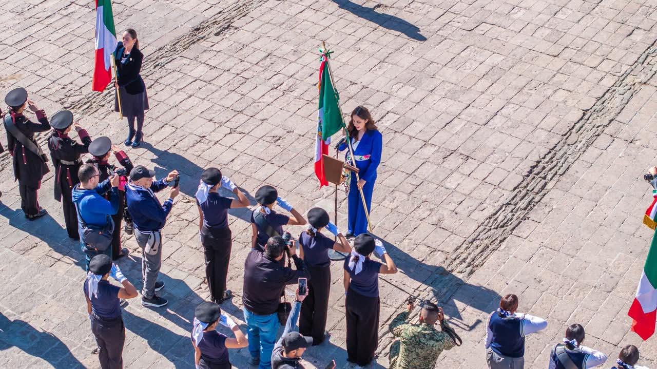 La Mandataria Estatal destacó que la Bandera Nacional representa la historia, las batallas, las esperanzas y el compromiso permanente de construir un México más justo y solidario, al tiempo que convocó a fortalecer la unidad como base del futuro.