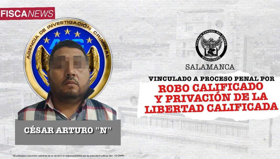 Salamanca, Gto.- 31 de agosto de 2023.- Ya está en prisión, vinculado a proceso penal por los delitos de robo calificado y privación de la libertad calificada, el presunto asaltante que el pasado lunes 21 de agosto del año en curso, despojó a una pareja de su camioneta en la carretera Valle de Santiago-Salamanca.