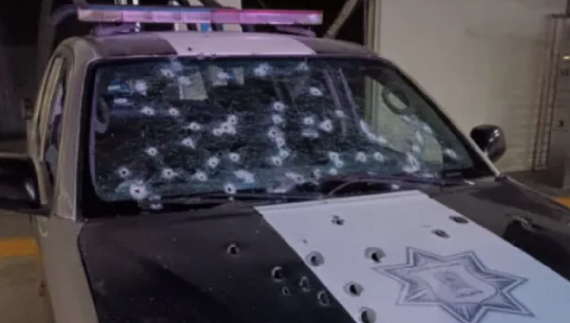 Enseguida elementos de Policía Municipal y personal paramédico se trasladó al lugar localizando una unidad de Policía con impactos de arma de fuego y en su interior a un compañero que desafortunadamente ya no contaba con signos vitales.