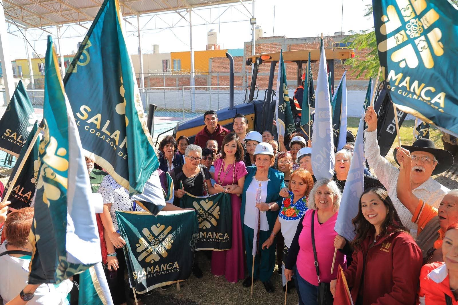 Salamanca, Gto. (2/3/2026).- El presidente municipal, César Prieto, junto con la presidenta del Sistema para el Desarrollo Integral de la Familia, Eugenia Martínez Carrillo, encabezó la colocación de la primera piedra del proyecto integral de adecuación de espacios en el Centro Gerontológico del DIF, ubicado en la colonia Renovación.