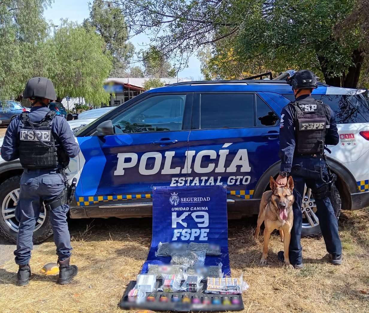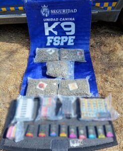 León, Gto. (5/2/2026).- La Unidad Canina K9 de las Fuerzas de Seguridad Pública del Estado realizó el aseguramiento de 49 vapeadores con presunta marihuana durante un operativo de inspección en una empresa de paquetería.