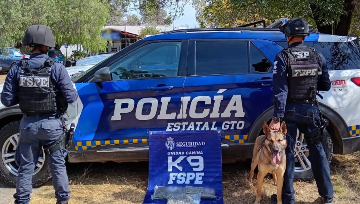 En las labores de inspección, el binomio canino “Evetke” realizó un marcaje positivo en cinco paquetes, lo que evitó el uso de servicios de mensajería para la distribución de droga en Guanajuato.