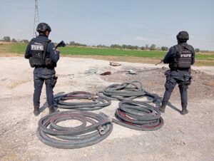 Celaya, Gto. (16/12/2025).- Personal de las Fuerzas de Seguridad Pública del Estado adscrito a la Región IV, aseguraron 40 mil litros de hidrocarburo de procedencia presuntamente ilícita y detectaron una toma clandestina en terracería.
