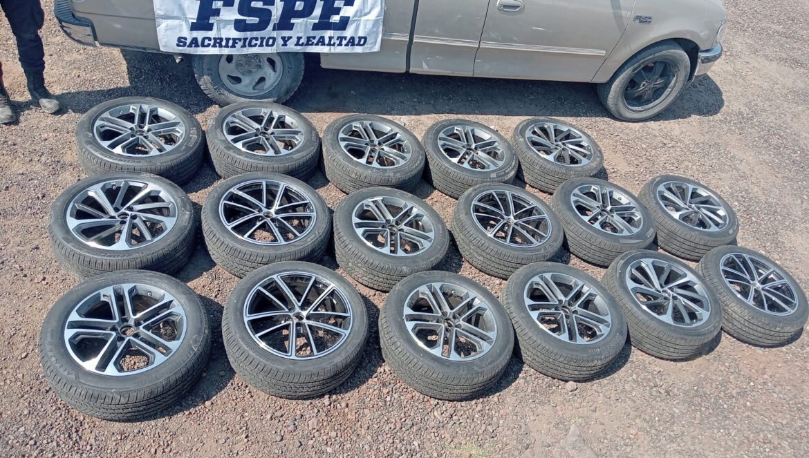 Al verificar a través del sistema C5i el número de serie de la camioneta Ford F-150, color arena, tipo Pick Up, se confirmó que no tenía reporte vigente de robo. No obstante, se procedió a su aseguramiento, junto con la mercancía recuperada: ocho llantas con rin y nueve sin rin.