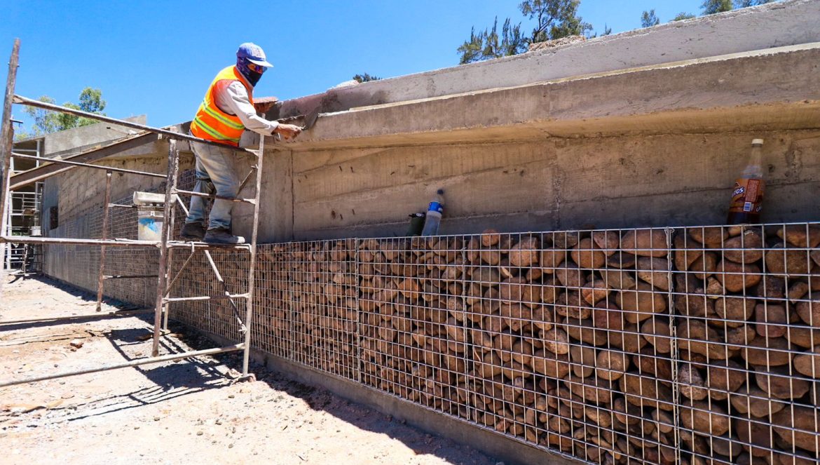 Actualmente se trabaja el muro exterior de piedra, aplanados, repellados y está pendiente de trabajar la estructura del área de capacitación, explicó el director de Obra Pública, Manuel Venegas Pérez.