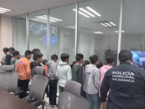 Salamanca, Gto. (12/1/2026).- Como parte de las acciones preventivas, 31 niñas y niños del programa Pandilla del Grupo Vivo de las comunidades Callejones y Granados visitaron las instalaciones del C4, donde participaron en pláticas, actividades de activación física y aprendieron protocolos de actuación ante situaciones de riesgo.
