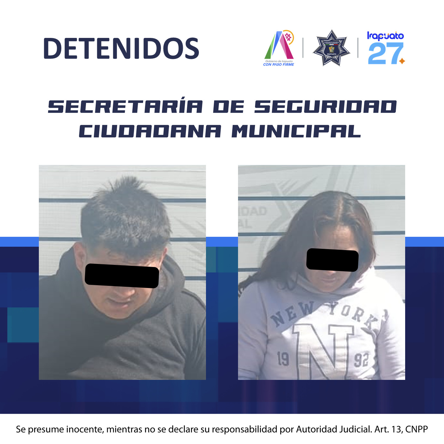 Irapuato, Gto. (18/3/2026).- Durante labores de vigilancia y atención a un reporte ciudadano, elementos de la Policía Municipal de Irapuato detuvieron a un hombre y una mujer por su probable participación en delitos contra la salud; además, estarían involucrados en hechos delictivos en agravio de tiendas de conveniencia.