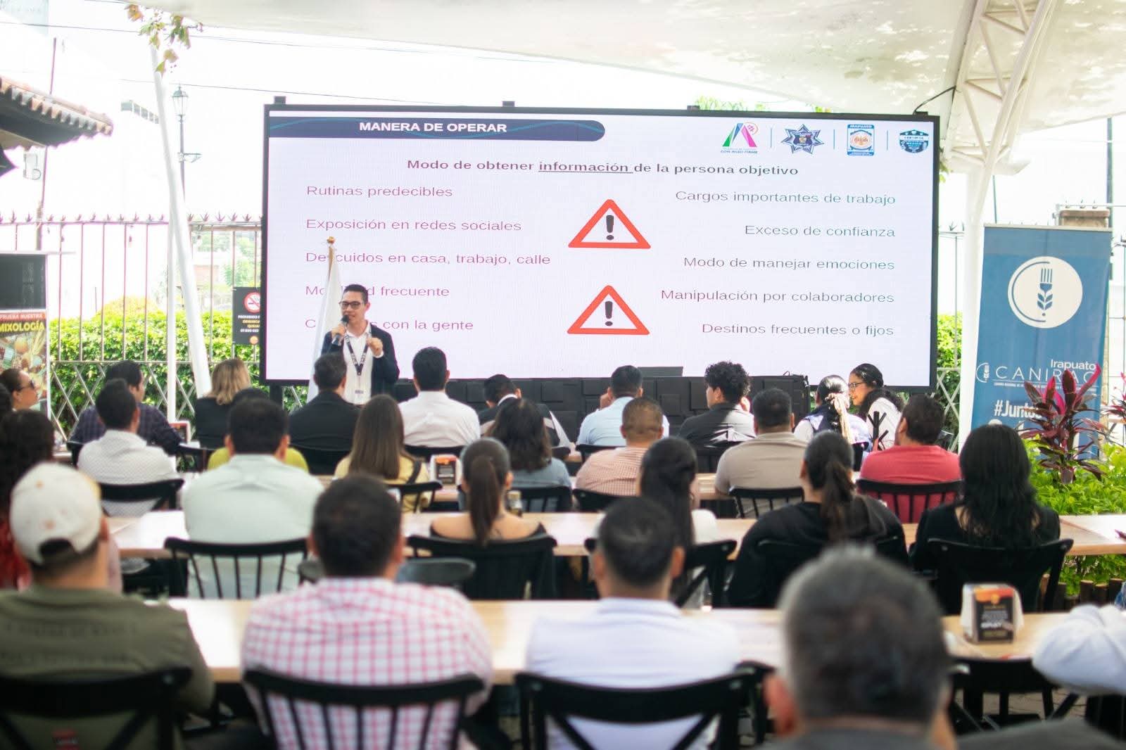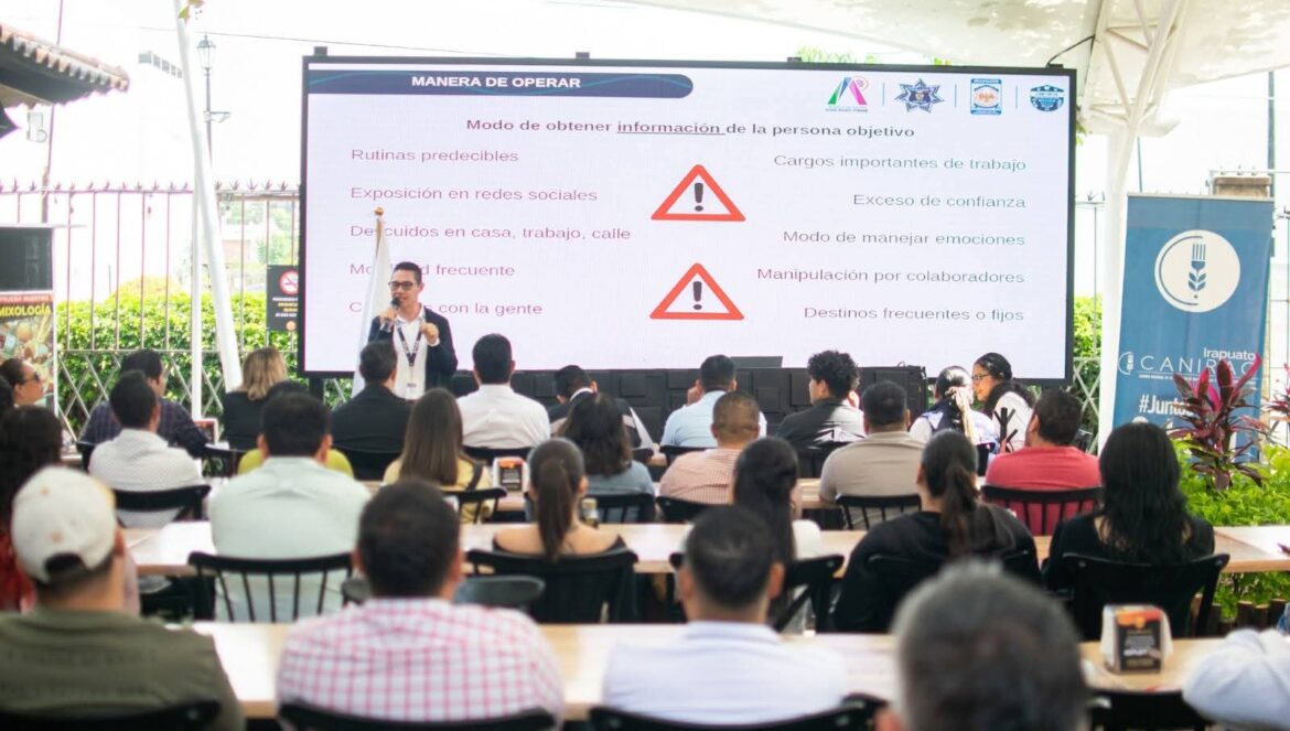 Irapuato, Gto. (22/7/2025).- Como parte de las acciones para fortalecer la seguridad y cultura de prevención entre el sector empresarial, el Gobierno Municipal de Irapuato, encabezado por la alcaldesa Lorena Alfaro, a través de la Secretaría de Seguridad Ciudadana, llevó a cabo una capacitación dirigida a integrantes de la Cámara Nacional de la Industria de Restaurantes y Alimentos Condimentados (CANIRAC), capitulo Irapuato.