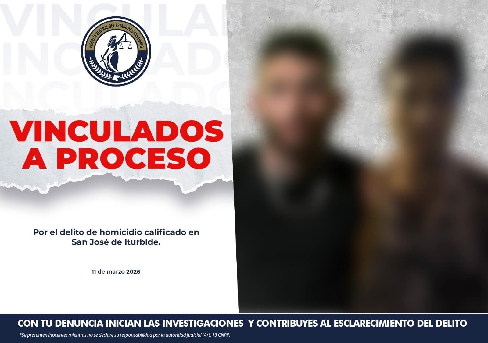 San José Iturbide, Gto. (12/3/2026).- Dos sujetos identificados como Diego Armando y Christian Fernando,fueron capturados y vinculados a proceso por su probable responsabilidad en el delito de homicidio calificado.