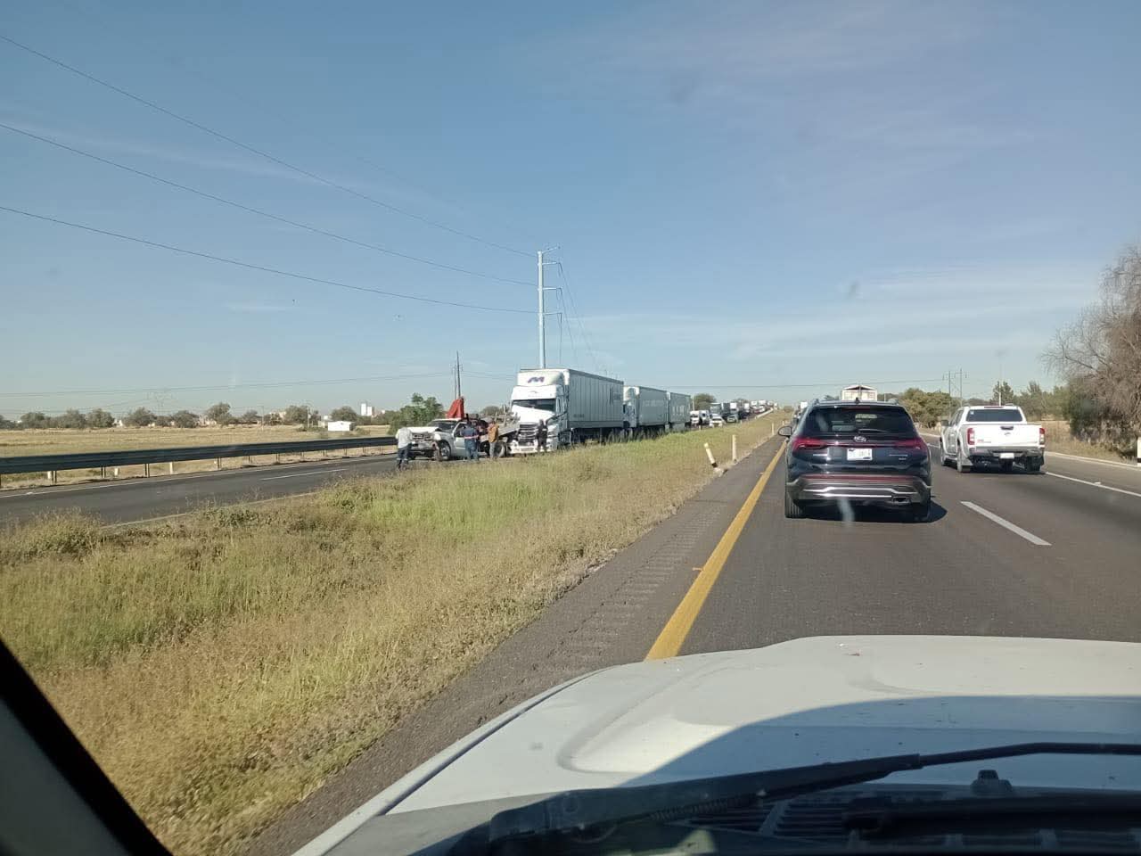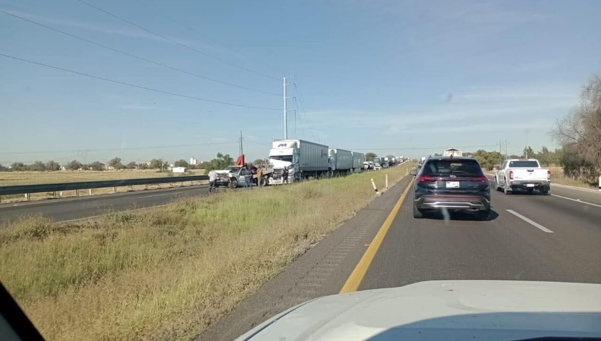 Apaseo el Grande, Gto. (12/11/2025).- Un accidente tipo carambola, en el que se vieron involucrados una camioneta y tres tráilers, se registró la mañana de este miércoles, sobre la autopista Celaya–Apaseo el Grande.