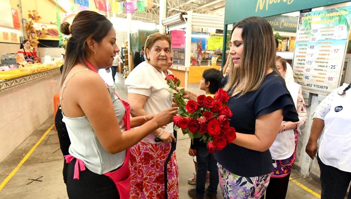Irapuato, Gto. (11/mayo/2023).- Autoridades municipales acudieron al mercado Sóstenes Rocha, para felicitar a las mamás comerciantes y reconocer su labor en la familia y la sociedad.