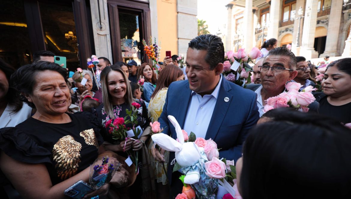 Guanajuato, Gto. 31 de marzo de 2023.- El Gobernador del Estado, Diego Sinhue Rodríguez Vallejo, junto con la Presidenta del DIF Estatal, Adriana Ramírez Lozano, participaron durante la mañana de hoy en los festejos tradicionales por el Día de las Flores y Viernes de Dolores, obsequiando flores a las y los guanajuatenses por el centro histórico de la Capital.