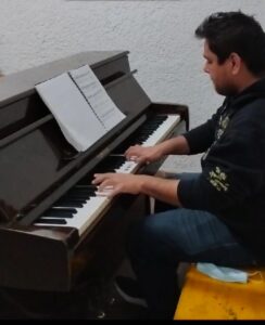 Además de compositor, Eduardo es maestro de arte en la primaria Benito Juárez, en la comunidad Estación Joaquín, municipio de Abasolo, donde imparte talleres de música y artes para que las y los estudiantes encuentren en la escuela un espacio seguro para expresarse, aprender y desarrollar sus habilidades. Con más de 20 años de trayectoria, continúa formándose profesionalmente en artes y composición.