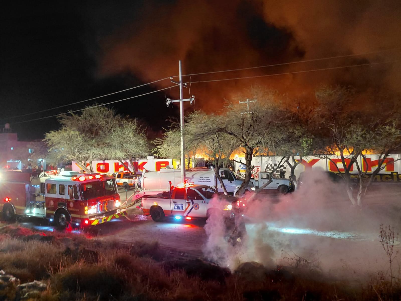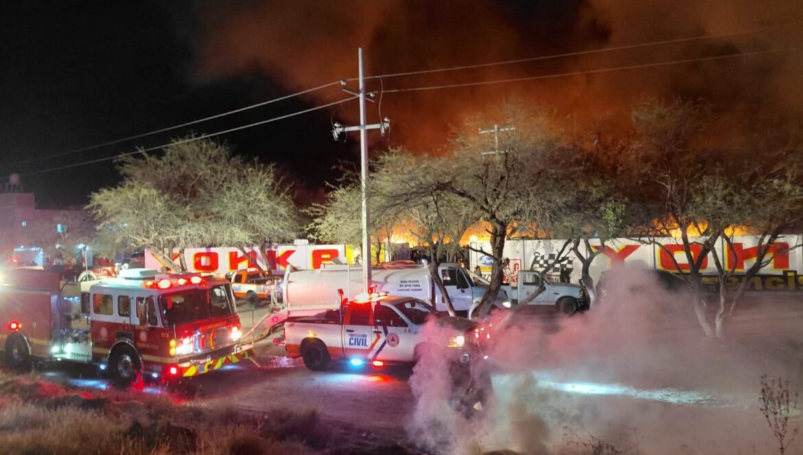 Purísima del Rincón, Gto. (26/2/2026).- Un incendio registrado en el deshuesadero de Montegrande, dejó como saldo 30 vehículos siniestrados, así como algunos electrodomésticos dañados, la noche de este miércoles.