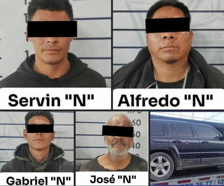 Los hombres detenidos fueron identificados como: José, de 60 años de edad, originario de Honduras; Alfredo, de 40 años y Servin de 29, ambos del estado de Jalisco, así como Gabriel, de 20 años, procedente de Chiapas.