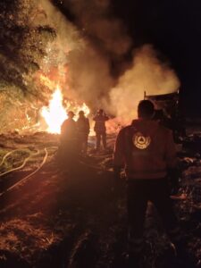 Salamanca, Gto. (7/11/2025). – La noche de este jueves, la Dirección de Protección Civil de Salamanca, en coordinación con Seguridad Pública Municipal, el Honorable Cuerpo de Bomberos y personal de Pemex Seguridad Física, atendieron de manera inmediata un incendio registrado en la comunidad de Oteros.