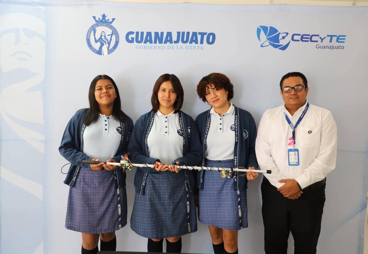 León, Gto. (20/10/2025).- En un brillante ejemplo de innovación, compromiso social y empoderamiento femenino, tres talentosas alumnas del Colegio de Estudios Científicos y Tecnológicos del Estado de Guanajuato (CECyTEG) Plantel Cortazar, desarrollaron el proyecto tecnológico “BASMART”, un bastón inteligente diseñado para mejorar la calidad de vida de personas con discapacidad visual.