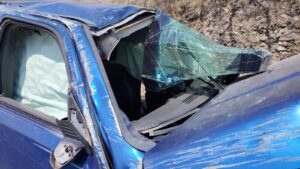 Atrás circulaba otro automóvil, cuyo conductor, al tratar de esquivar al primero, invadió el carril contrario y chocó contra la camioneta.