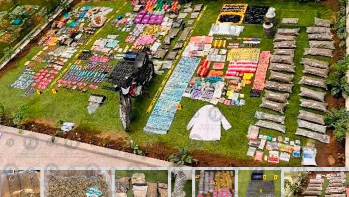 Además se localizaron múltiples envoltorios y bolsas con hierba verde y seca, en presentación de flor y pulverizada, bolsas tipo ziploc, entre otros instrumentos del delito.