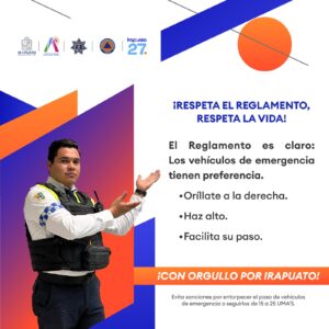 Por ello la Dirección General de Tránsito Municipal informa que constituye infracción no ceder el paso, entorpecer la circulación o seguir a unidades de seguridad y emergencia, así como utilizar luces o señales sonoras propias de estos servicios en vehículos particulares.