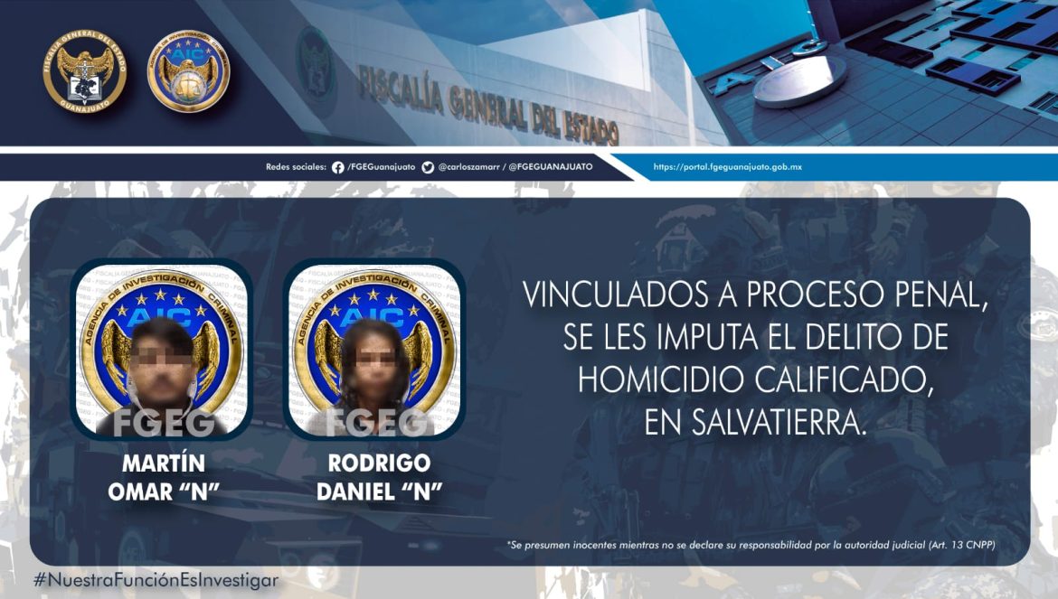 Salvatierra, Gto., 20 de febrero de 2023.- Dos presuntos homicidas que asesinaron a un hombre de la tercera edad al interior de su domicilio en la ciudad de Salvatierra, han sido detenidos y vinculados a proceso penal. El Ministerio Público presentó ante un Juez los datos de prueba que incriminan a los inculpados como coautores en el delito de homicidio calificado.