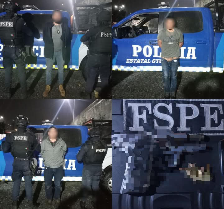 Yuriria, Gto. (27/6/2025).- Tres hombres fueron detenidos en posesión de un arma de fuego, cartuchos útiles y un vehículo, en la Comunidad El Moro, como resultado de un operativo de vigilancia realizado por elementos de las Fuerzas de Seguridad Pública del Estado.