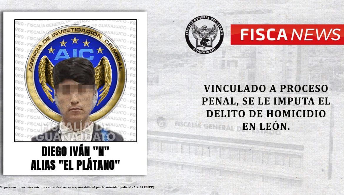 León, Gto., 20 de junio de 2023.- La Fiscalía de Guanajuato esclareció y detuvo al presunto homicida de un joven que fue asesinado a balazos en la puerta de su domicilio, el 18 de diciembre de 2022, en la colonia León I, en León. Elementos de la Agencia de Investigación Criminal ubicaron a DIEGO IVÁN “N” alias “El Plátano” y cumplimentaron la orden de aprehensión en su contra.