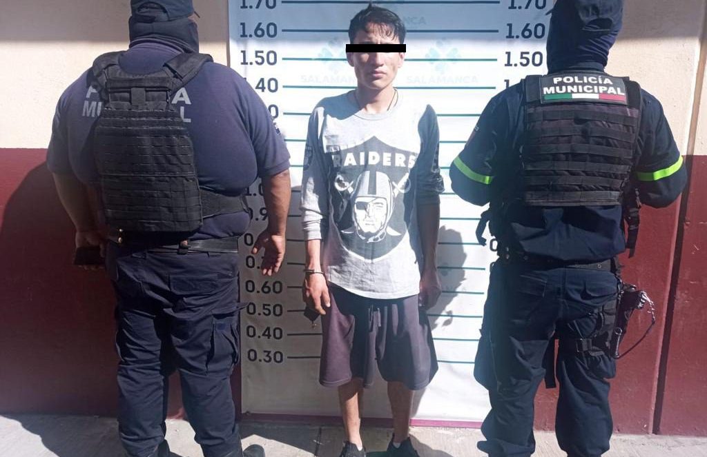 Salamanca, Gto. (24/enero/2023).- Un sujeto fue detenido por elementos de la Policía Municipal y se le aseguraron 16 bolsas de plástico con sustancias granuladas conocida como la droga “cristal”.