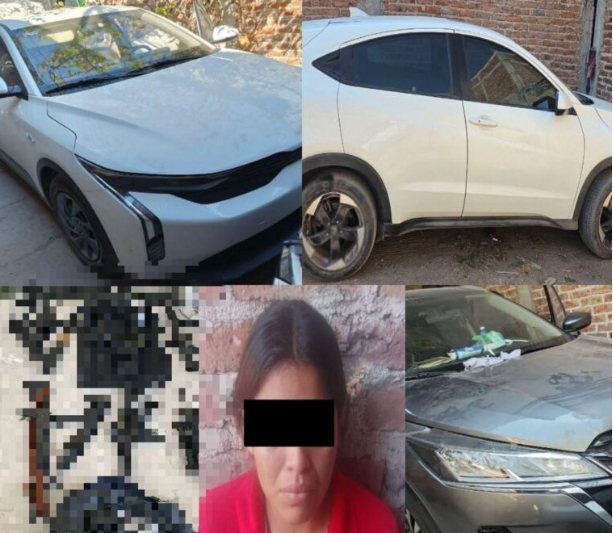 Las autoridades localizaron 10 armas largas, 21 cargadores, 180 cartuchos útiles y tres vehículos: una Nissan Kicks, un coche blanco de la marca Kia y una camioneta Honda, dos de ellos con reporte de robo.