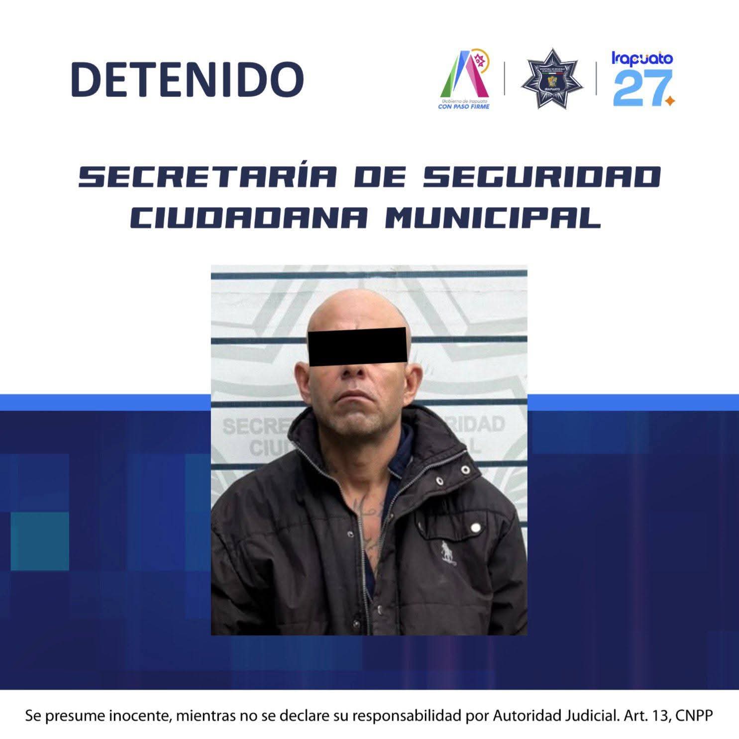 Irapuato, Gto. (1/12/2025).- La Policía Municipal detuvo a un individuo identificado, mediante labores de inteligencia y análisis operativo, como objetivo prioritario para la Secretaría de Seguridad Ciudadana Municipal de Irapuato, por su posible relación con diversos hechos delictivos que afectan el patrimonio de la ciudad, principalmente robos a comercios como tiendas de conveniencia Oxxo y farmacias.
