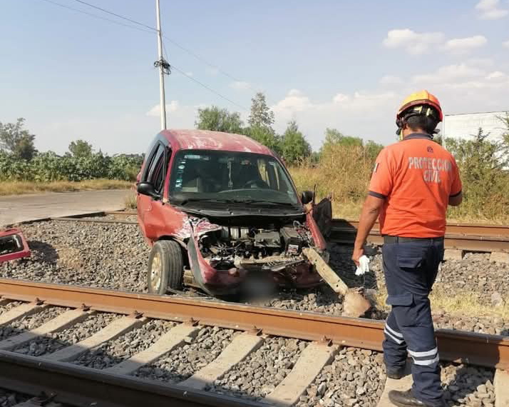 En el sitio indicado, el personal de emergencias encontró una camioneta Caravan color guinda, en medio de las vías del tren, totalmente dañada del frente y brindaron atención prehospitalaria a un hombre y una mujer, los cuales se reportan estables de salud.