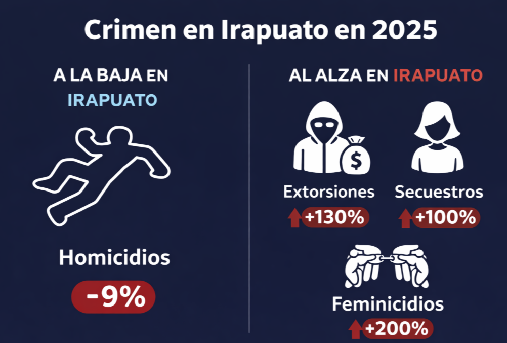 En general, durante el 2025 el municipio Irapuato registró una baja en el comportamiento de 8 tipos de delitos y 6 mostraron un aumento significativo.