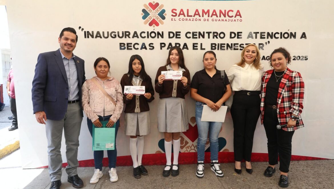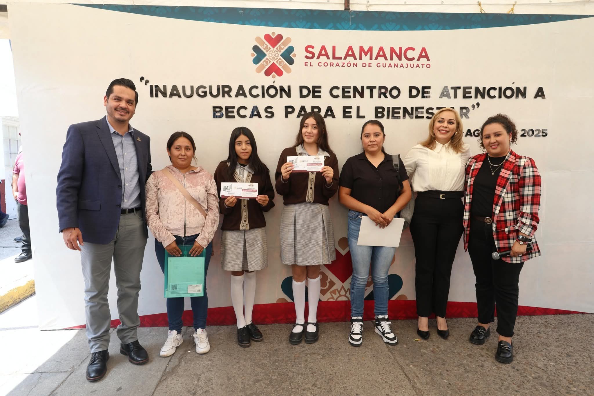 Salamanca, Gto. (14/8/2025).- Como parte del compromiso por fomentar el bienestar social y contribuir a la construcción de la paz, el Gobierno Municipal de Salamanca, en coordinación con el Gobierno Federal, llevó a cabo la inauguración del primer Centro de Atención a Becas del Bienestar en el municipio.