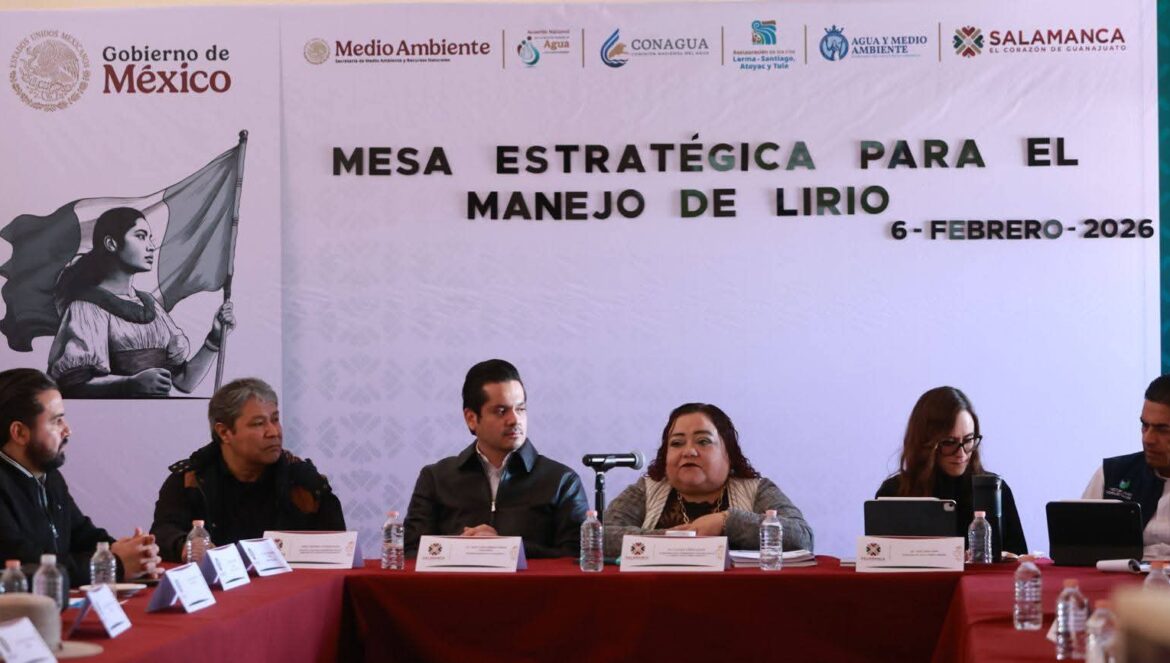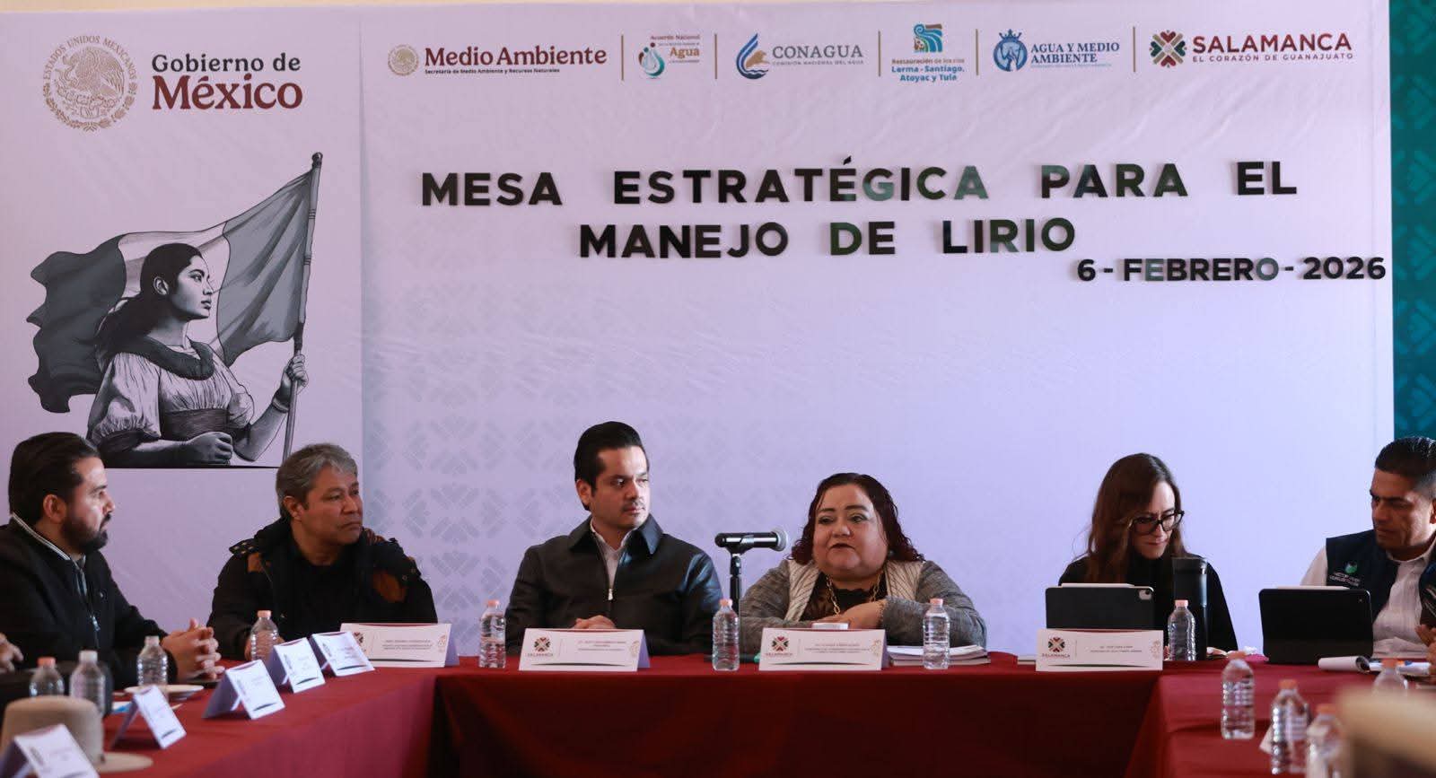 Salamanca, Gto. (10/2/2026).- El presidente municipal, César Prieto, participó junto con la comisionada de Saneamiento y Restauración de la Cuenca del Río Lerma, Claudia Gómez Godoy, en la Mesa Estratégica para el Manejo del Lirio Acuático, realizada en el municipio de Salamanca, con el propósito de analizar propuestas técnicas y establecer acciones conjuntas para atender esta problemática ambiental.