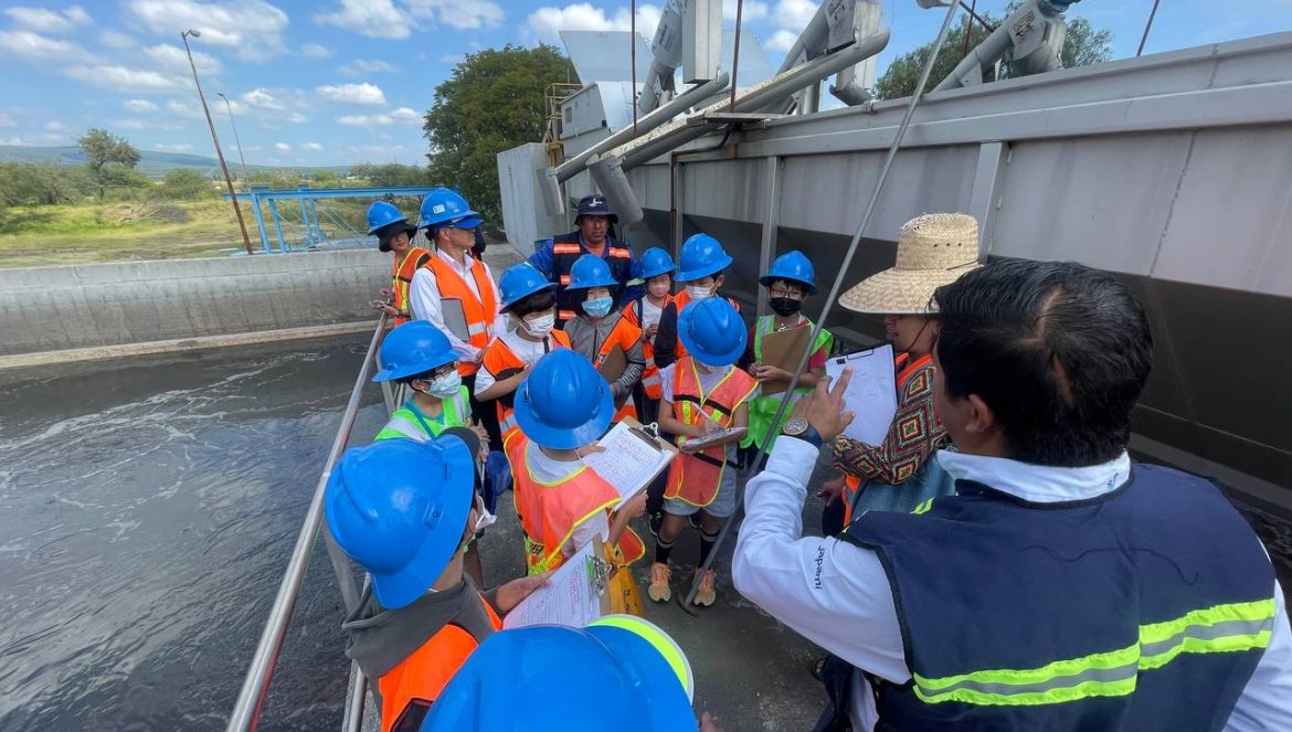 Irapuato, Gto. (9/10/2023).- Estudiantes del Instituto Japonés de Guanajuato, visitaron la Planta de Tratamiento de Aguas Residuales (PTAR) en la que conocieron los procesos que se realizan para el saneamiento del agua residual.