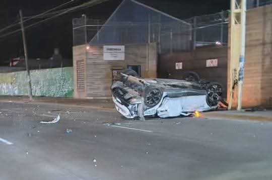 El conductor de la camioneta perdió el control de la unidad, chocó contra una jardinera y terminó volcada en el carril contrario.