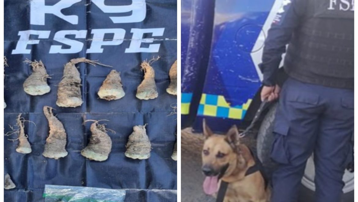 León, Gto., 26 de julio de 2023.- Durante operativos realizados a empresas de paquetería, elementos de la Unidad Canina K9 de las Fuerzas de Seguridad Pública del Estado (FSPE), lograron asegurar al interior de un establecimiento de dicho giro, 20 dosis de una hierba verde y seca con las características de la mariguana, además de 13 ejemplares de cactus de peyote.