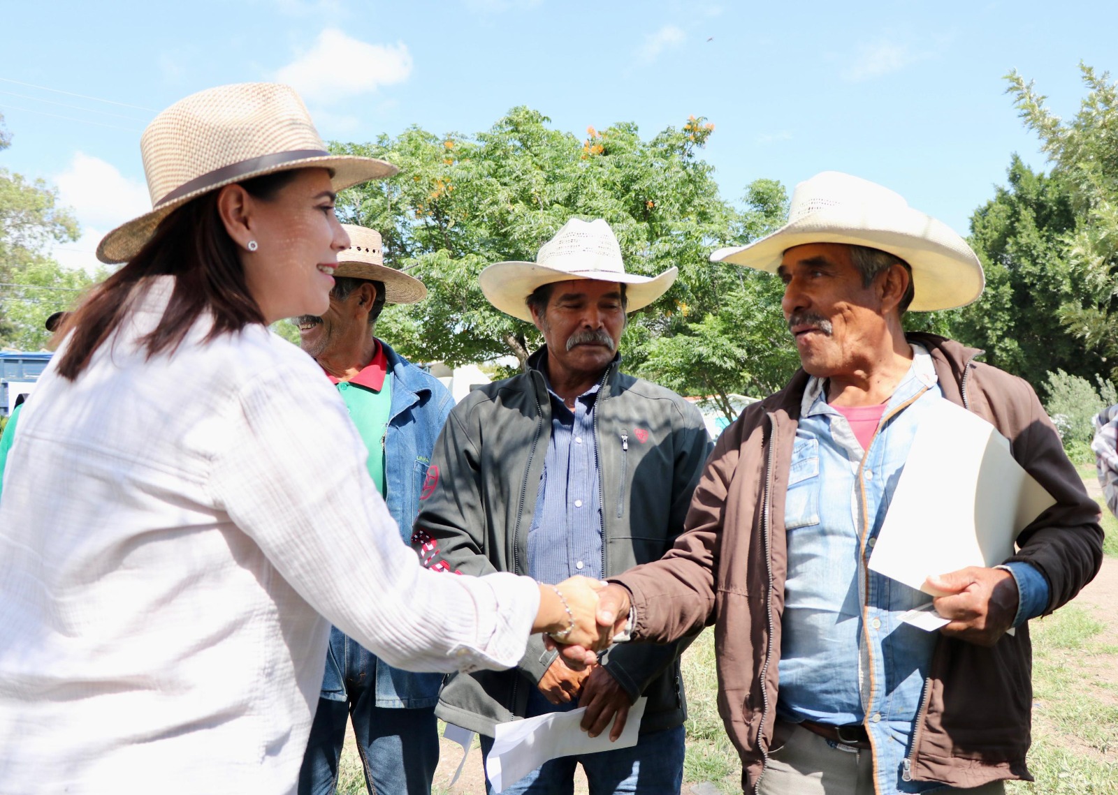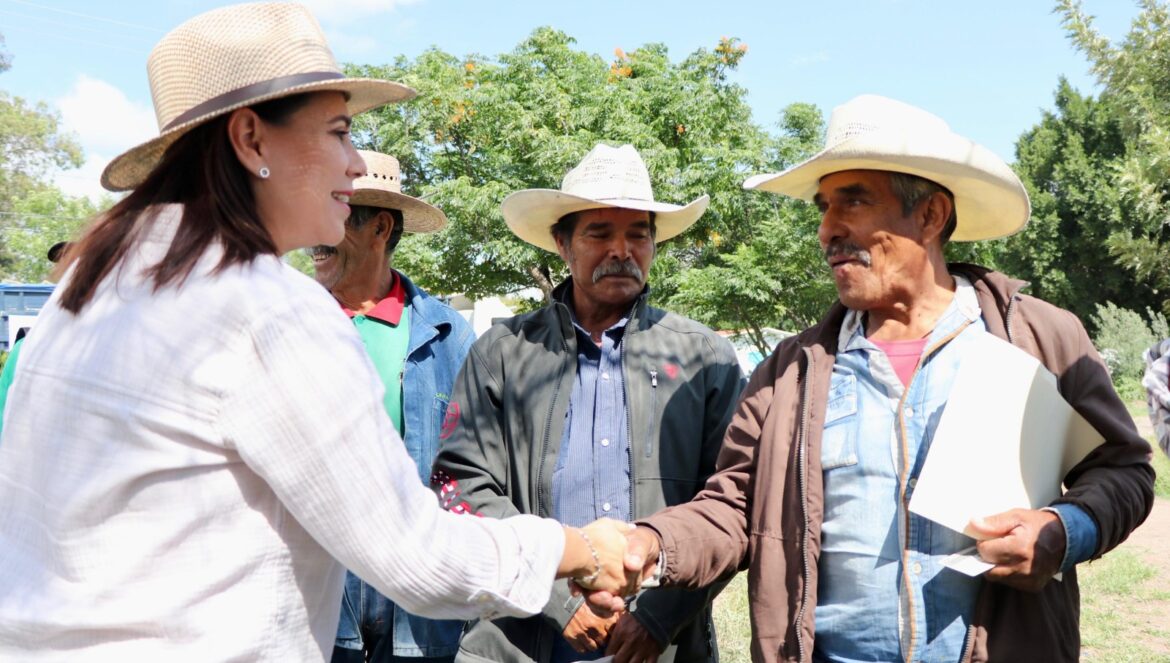 Lorena Alfaro García, presidenta municipal, en su visita a la comunidad de Aldama, destacó el apoyo a productores agrícolas de esta zona de la ciudad, pues con el Paquete Tecnológico se verán beneficiados económicamente.