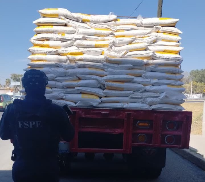 En el marco de la Coordinación Operativa de la Nueva Fuerza de Inteligencia Anticrimen (CONFIA), durante patrullajes de prevención y vigilancia realizados por integrantes de la Comisaría Regional IV, se detectó un tractocamión color rojo, tipo plataforma, cargado con bultos de fertilizante, así como a tres hombres alrededor de la unidad.