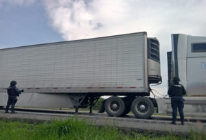 En el mismo punto fue localizado un segundo tractocamión Volvo color blanco, con caja seca y carga de productos de la marca Nestlé. La unidad presentaba daños en los cristales y, al no encontrarse el operador en el sitio, fue asegurada y puesta a disposición del Ministerio Público.