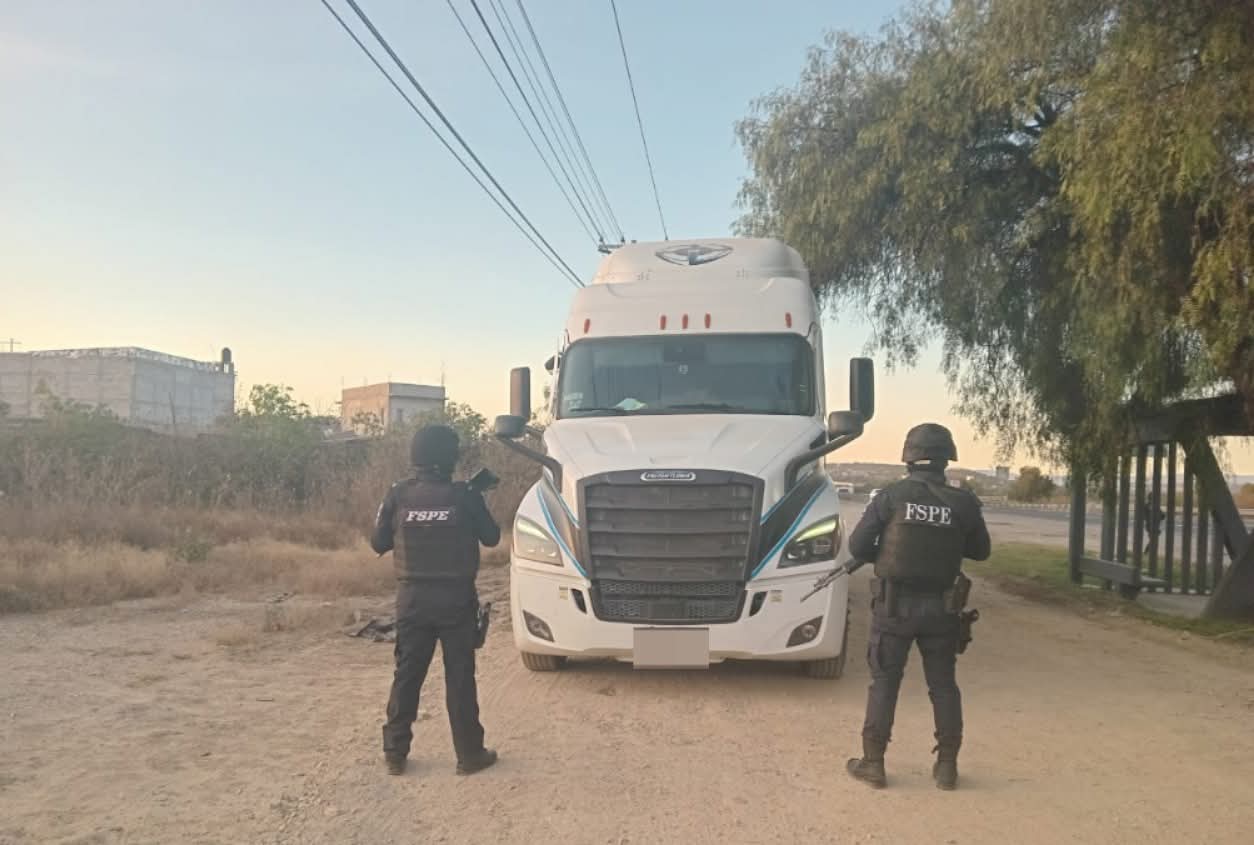 San José Iturbide, Gto. (14/11/2025).- Integrantes de las Fuerzas de Seguridad Pública del Estado frustraron el robo de un tractocamión con carga industrial valuada en un millón de pesos, tras un reporte de pérdida de comunicación recibido en el C5i.