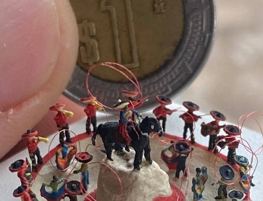 Los premiados de Guanajuato son Abel Ávalos Guerrero, del municipio de Dolores Hidalgo, Cuna de la Independencia Nacional, por su obra “Jineteando”, un sombrero charro de barro elaborado con técnica de gotitas de alta temperatura, adornado con figuras de mariachis, ballet folklórico y un jinete.