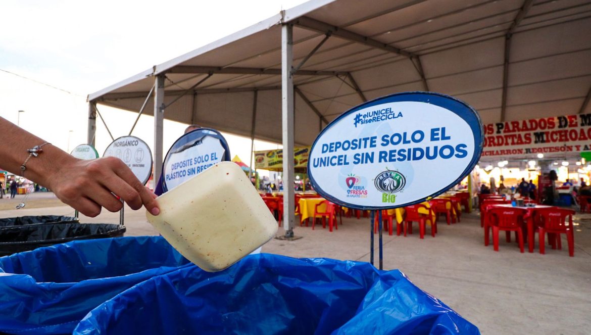 Irapuato, Gto. (28/marzo/2023).- La elaboración de materiales escolares y bancas con unicel reciclado será posible gracias al programa ‘El unicel sí se recicla’, que se lleva a cabo en la Feria de las Fresas 2023.