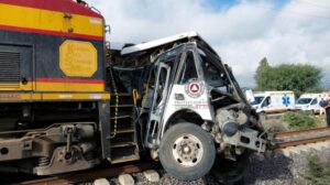 Trascendió que por un descuido del conductor del camión, al parecer por ver su celular, continuó avanzando a pesar de que el tren pasaba justo al mismo tiempo, por lo que el vehículo público, fue impactado de costado.