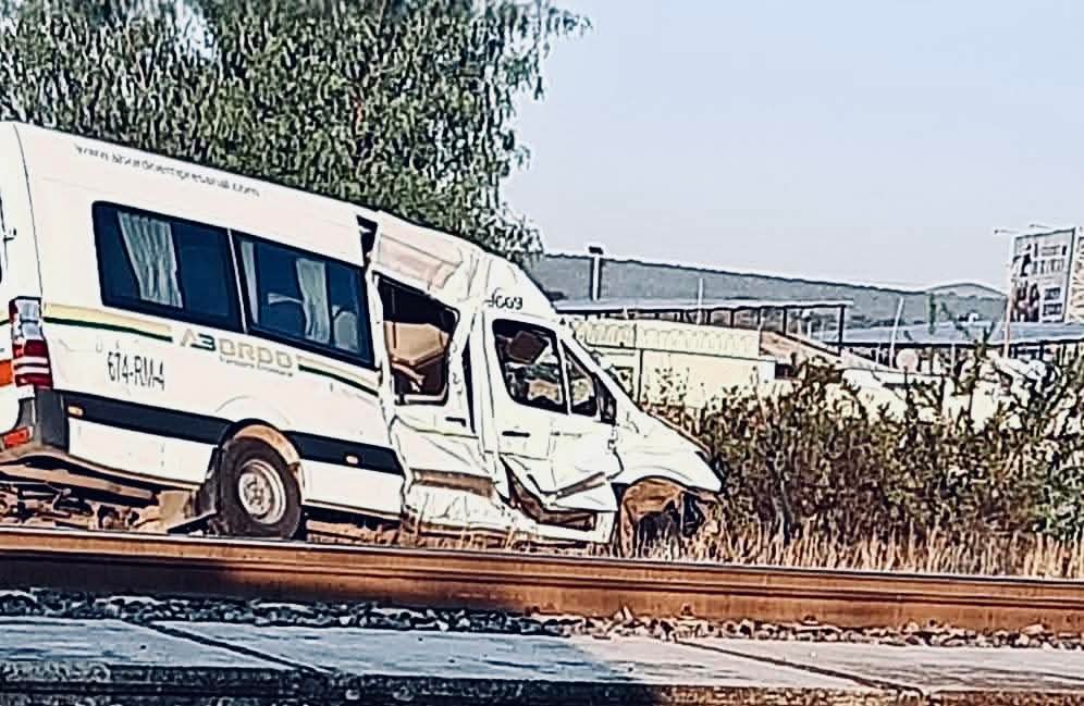 San José Iturbide, Gto. (17/10/2025).- El conductor de una camioneta de transporte de personal resultó herido tras ser impactado por el tren al tratar de ganarle el paso, alrededor de las 8:00 de la mañana de este viernes.
