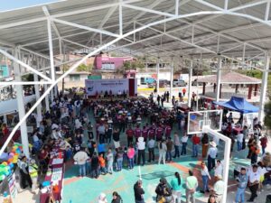 Durante la ceremonia, se inauguraron los trabajos de rehabilitación de la techumbre de las canchas deportivas y del espacio público en San José de Mendoza.