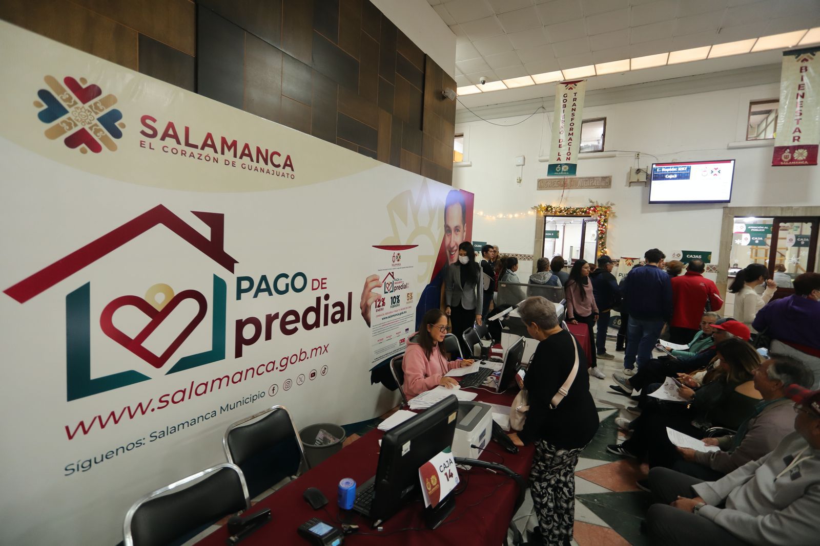 Las contribuciones se pueden realizar en línea a través del enlace predial.salamanca.gob.mx y de manera presencial y sin pago de comisión en las cajas de Presidencia Municipal, en el Portal Octaviano Muñoz Ledo y en Leona Vicario, así como en el Kiosco Digital ubicado en Plaza Galerías y en ventanillas del banco BanBajío.