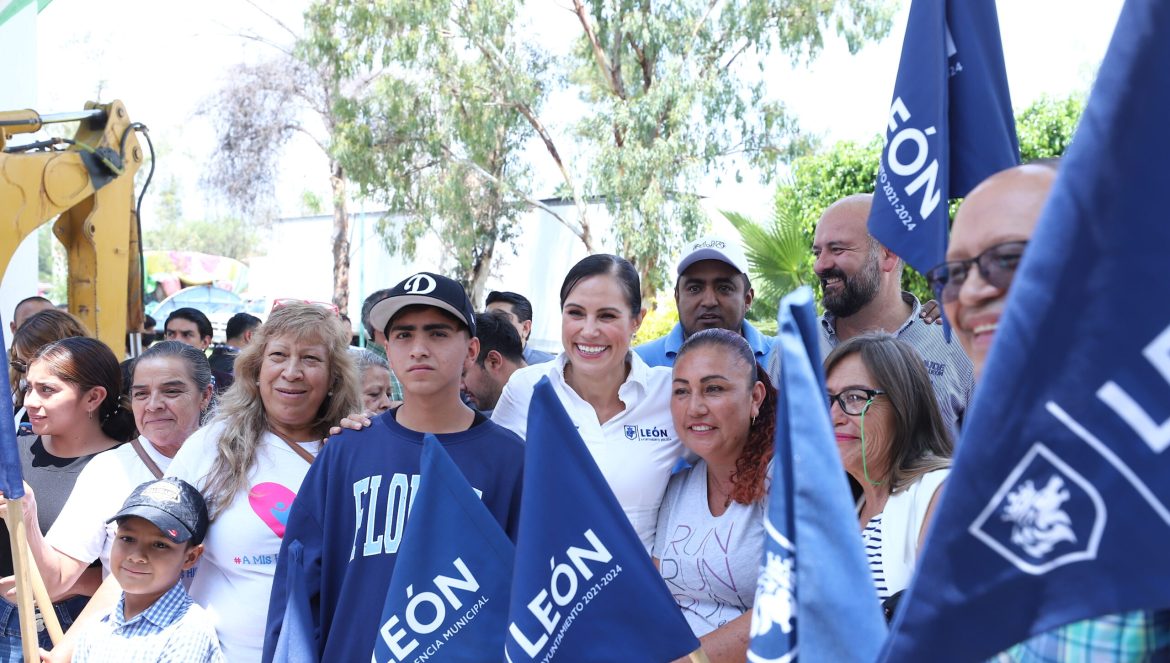 La presidenta municipal de León y cientos de colonos realizaron el corte de listón de una cancha del futbol para que los jóvenes puedan practicar este deporte de una manera más digna.