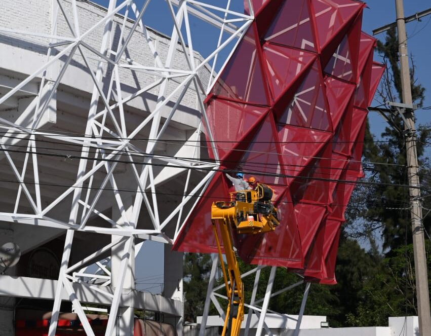 Irapuato, Gto. (24/4/2025).- Luego de que el material color rojo comenzara a colocarse en la fachada del Estadio Sergio León Chávez y fuera criticado en redes sociales, el Gobierno Municipal reafirmó que innovación, resistencia y durabilidad son las características de los materiales que conforman el proyecto de rehabilitación de este recinto mundialista .