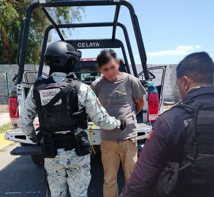 Celaya, Gto. (19/3/2025).- Policías municipales y elementos de la Guardia Nacional lograron detener a un hombre, identificado como Miguel, por lesiones e intento de feminicidio.